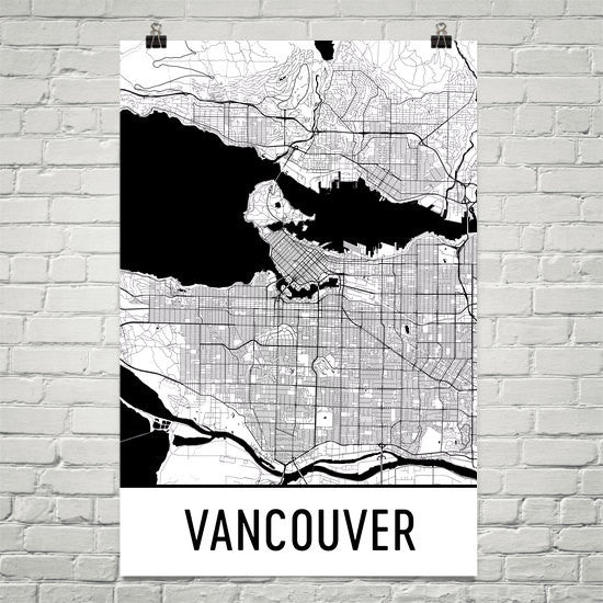 Vancouver BC Street Map Poster Wall Print by Modern Map Art